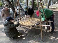 3月の21日と22日、地区定形外訓練が興津宗像神社境内をお借りして実施されました。第1日目は、春の定型コース参加予定者を対象にしたスキルトレーニングが行われ、ロープ、野外工作物、A型テントの取り扱い、野外炊事、地図とコンパス、刃物の取り扱いなど盛りだくさんのプログラムが展開されました。