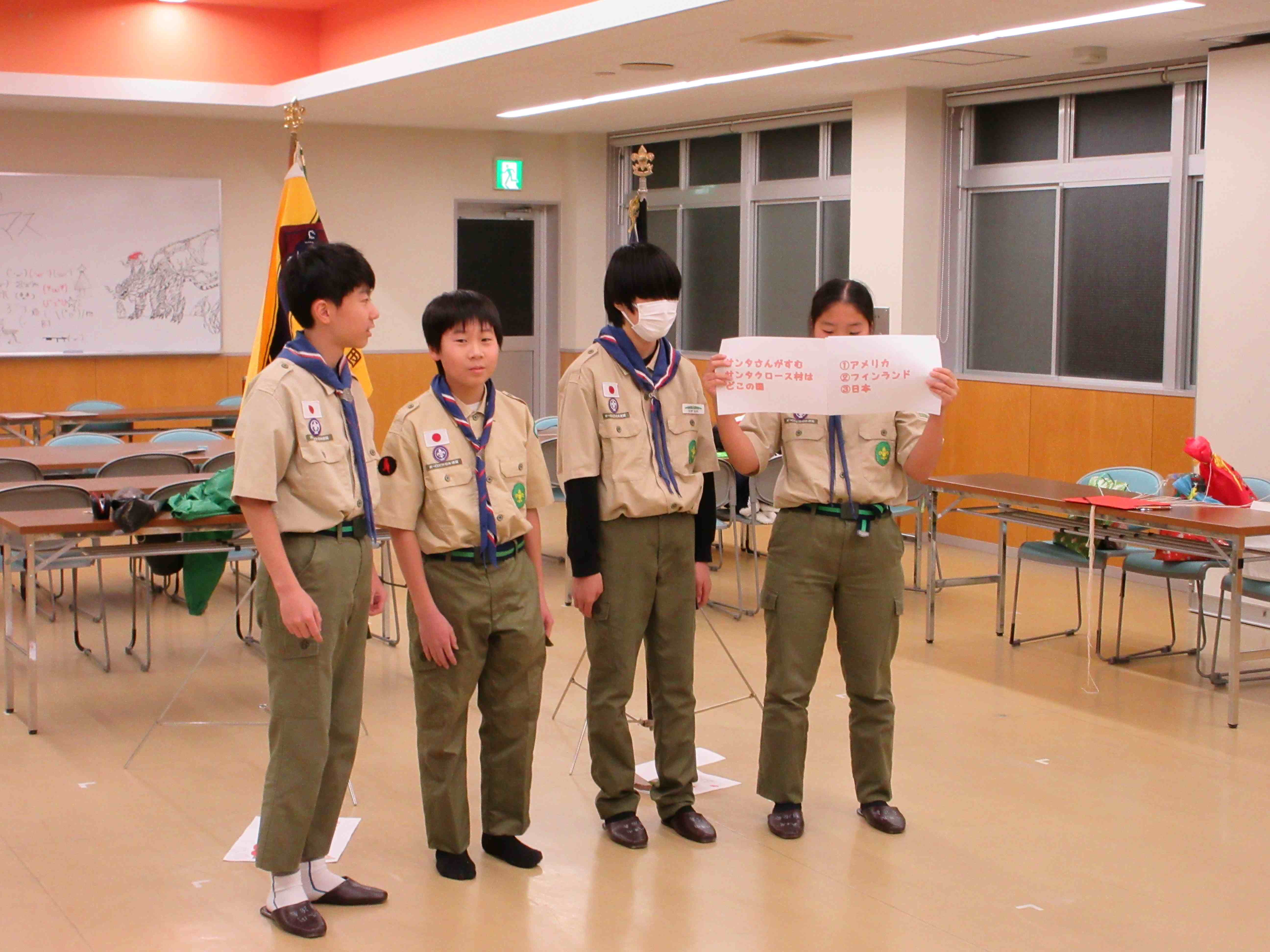 八木間町自治会館をお借りして、1団のクリスマス会が行われました。昨年同様にBS隊がスープをつくり、また、お互いにプレゼントの交換もして、各隊の工夫した