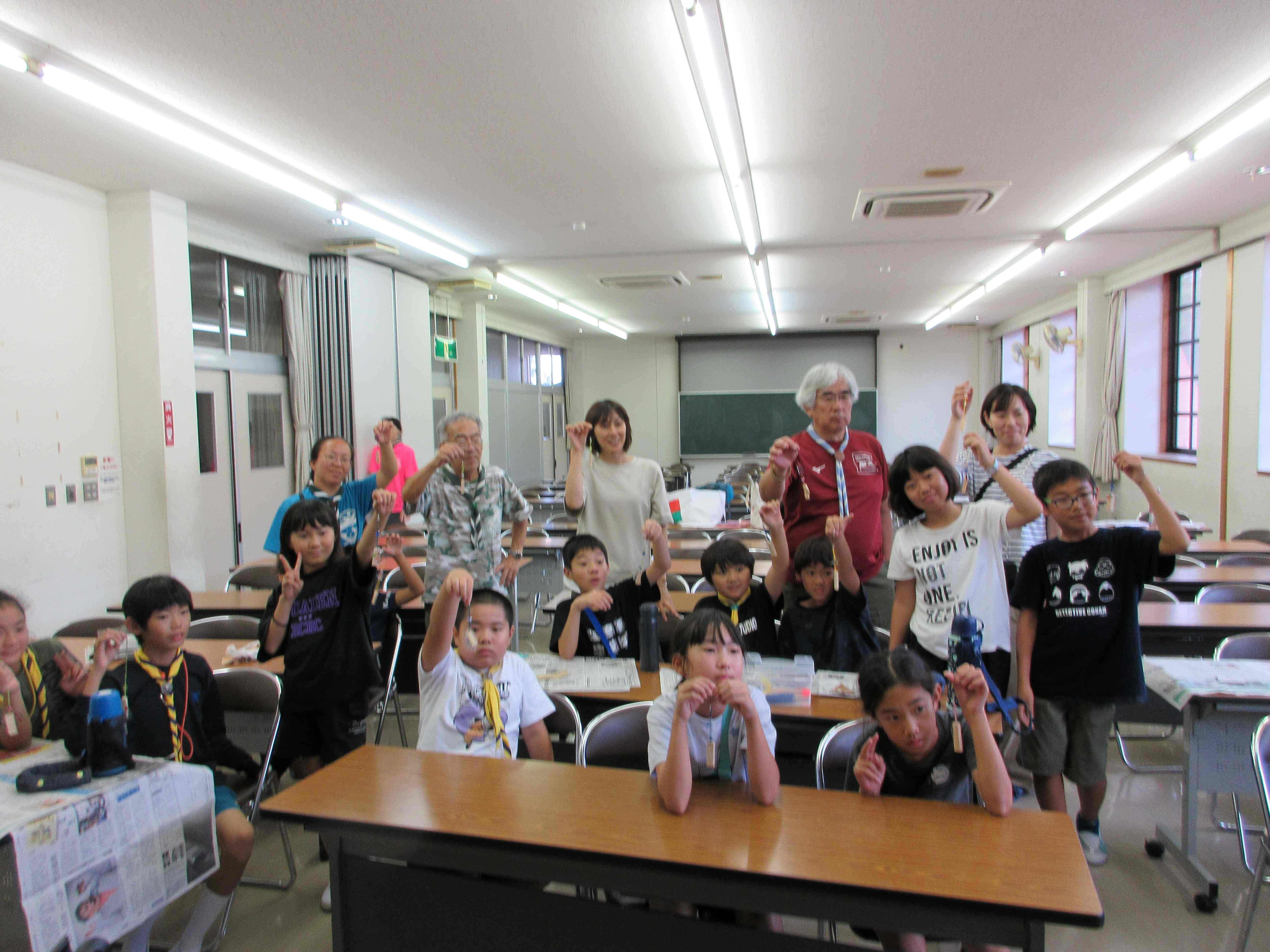 7月5〜6日宗像神社でキャンプを行いました。ボーイ隊は1泊し、カブ隊は6日のワンデイキャンプでした。ボーイ隊はスエーデントーチを作り、夜の集いの灯かりとしました。6日はいつも使わせて頂いている境内の清掃をし、昼はカートンドッグをつくりました。七夕飾りもつくりました。