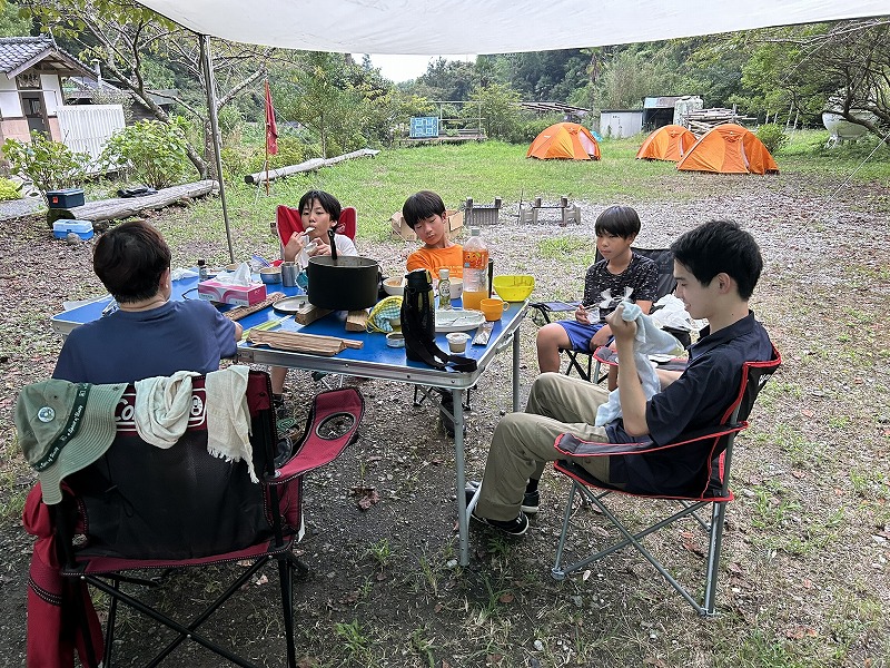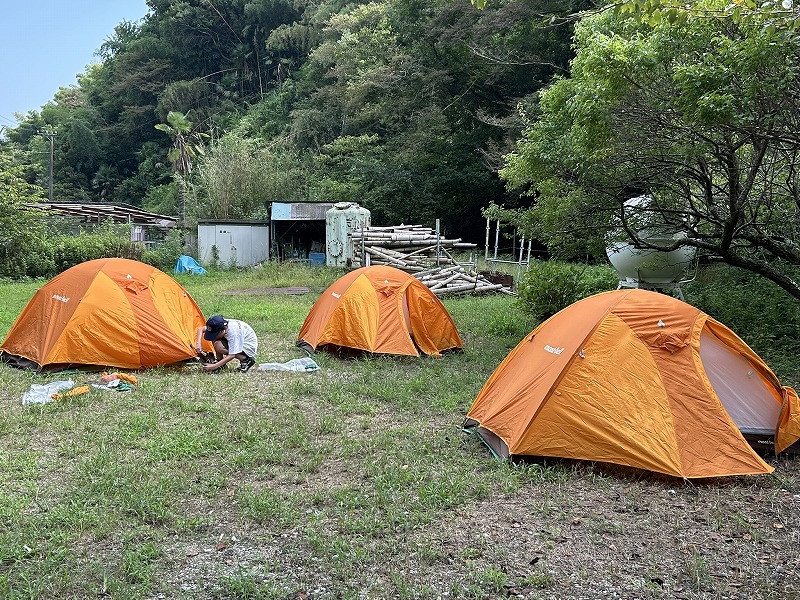 9月の地区キャンポリーに備えて、テントを立てて食事作りを行いました